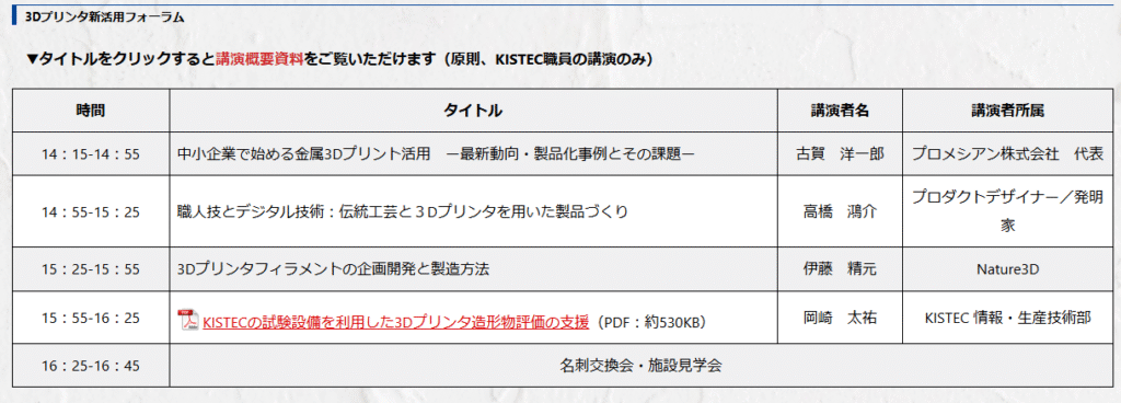 このたび、神奈川県の公設試験研究機関である 神奈川県立産業技術総合研究所(KISTEC)が主催するフォーラム「3Dプリンタ新活用フォーラム」において、弊社代表取締役の 古賀 洋一郎 が講演を担当いたします。3Dプリント技術を活用した製品化・事業化に取り組む皆様にとって、有益な情報をお届けできる機会となっております。